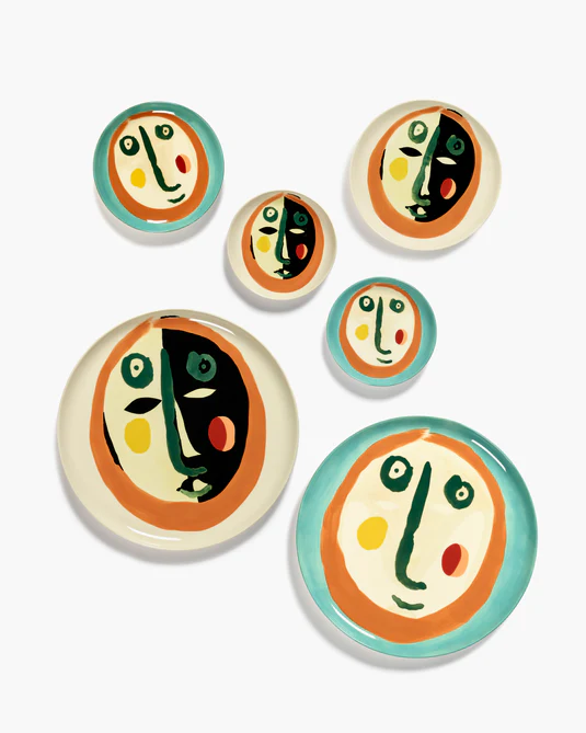 Luxurious earthenware with a semi-glaze finish and an abstract face designed by artist Ivo Bisignano.