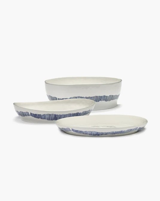 Deep serving plate S white - blue stripes Feast
