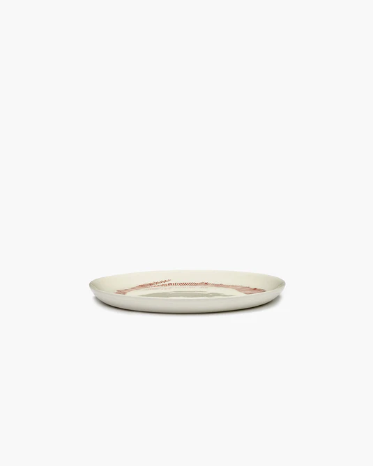 The smooth finish of this white earthenware plate is a playful contrast to the organic and cheerful red stripes. This interplay of elements reflects the cheerfulness and vibrancy for which Ottolenghi's Feast collection is known.