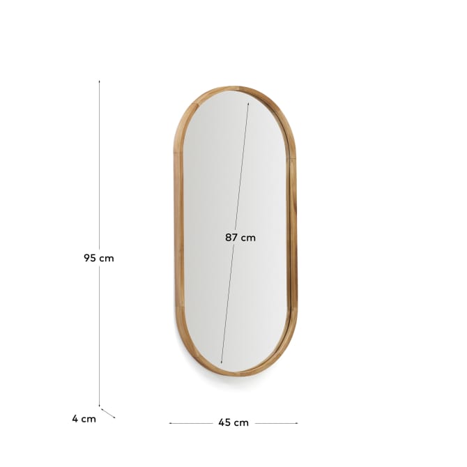Dimensions: Magda mirror made of solid teak wood with a natural finish diameter 45 x 95 cm