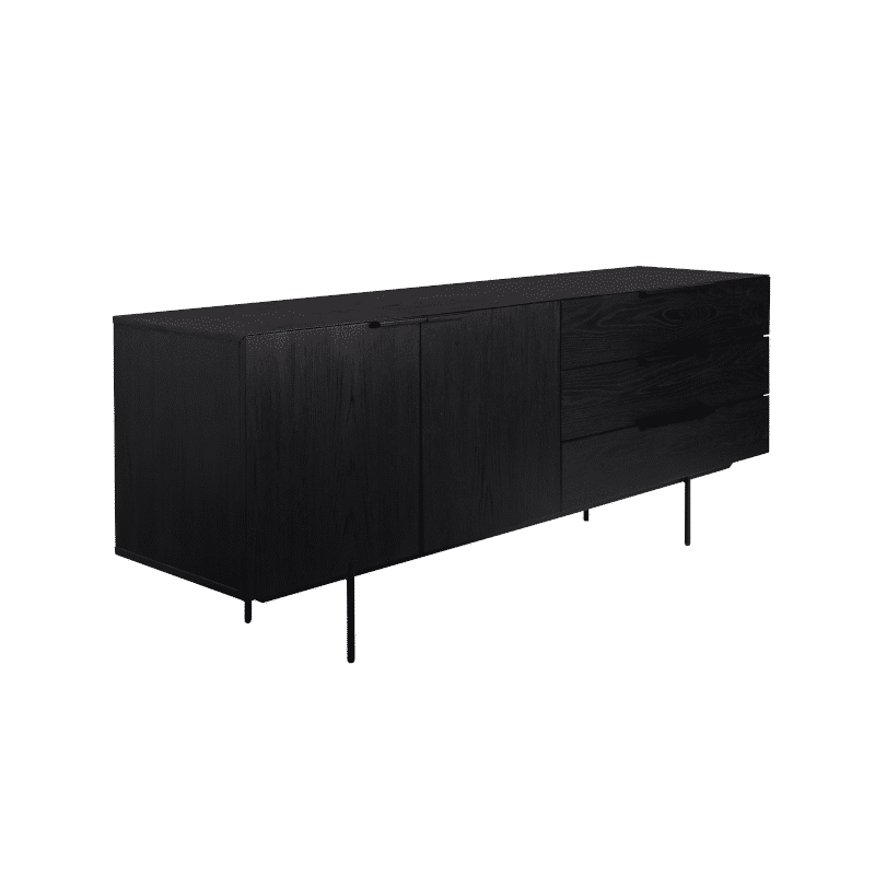 MDF sideboard with black lacquered oak veneer or naturally lacquered walnut veneer