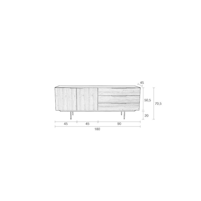 Dimensions: 180x45x70,5 cm (WxDxH) Leg height: 20 cm