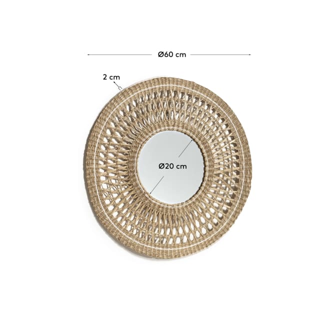 Dimensions: Verenade natural fibre mirror, with a natural white finish diameter 60 cm
