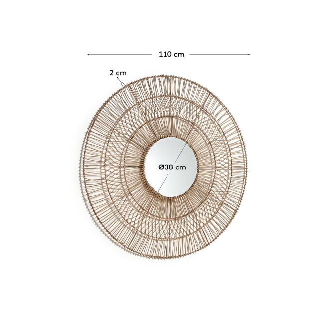 Dimensions: Viviana ratan mirror with a natural finish, diameter 110 cm