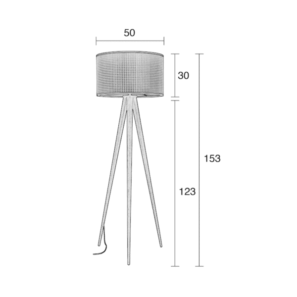 Dimensions: Dimensions shade: 50×30 cm (Diameter x H)Total dimensions: 50×157 cm (Diameter x H)Light source: E27, max. 75 watt regular bulb, max. 25 watt savings, max. 22 watt LEDEnergy efficiency class: A++ – E