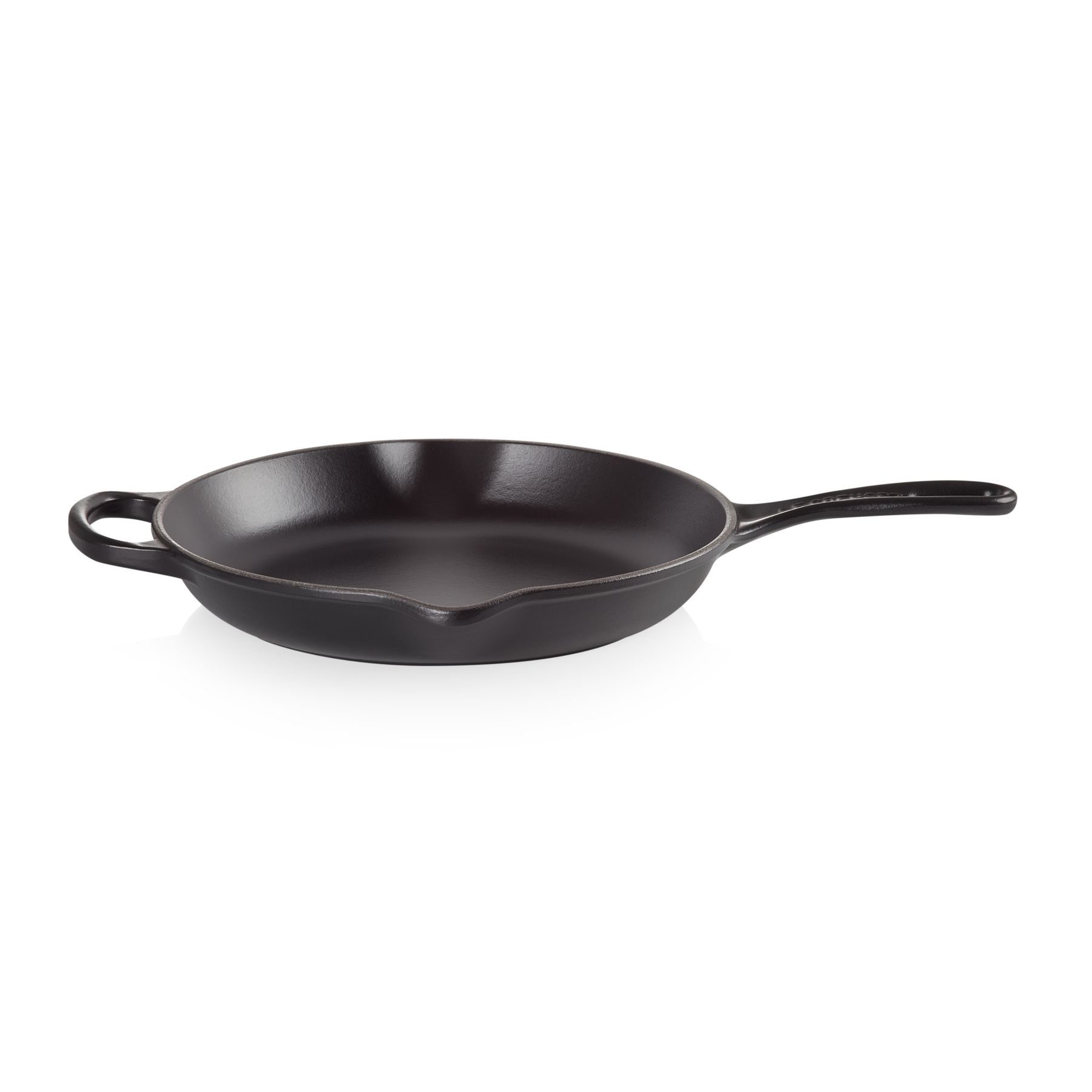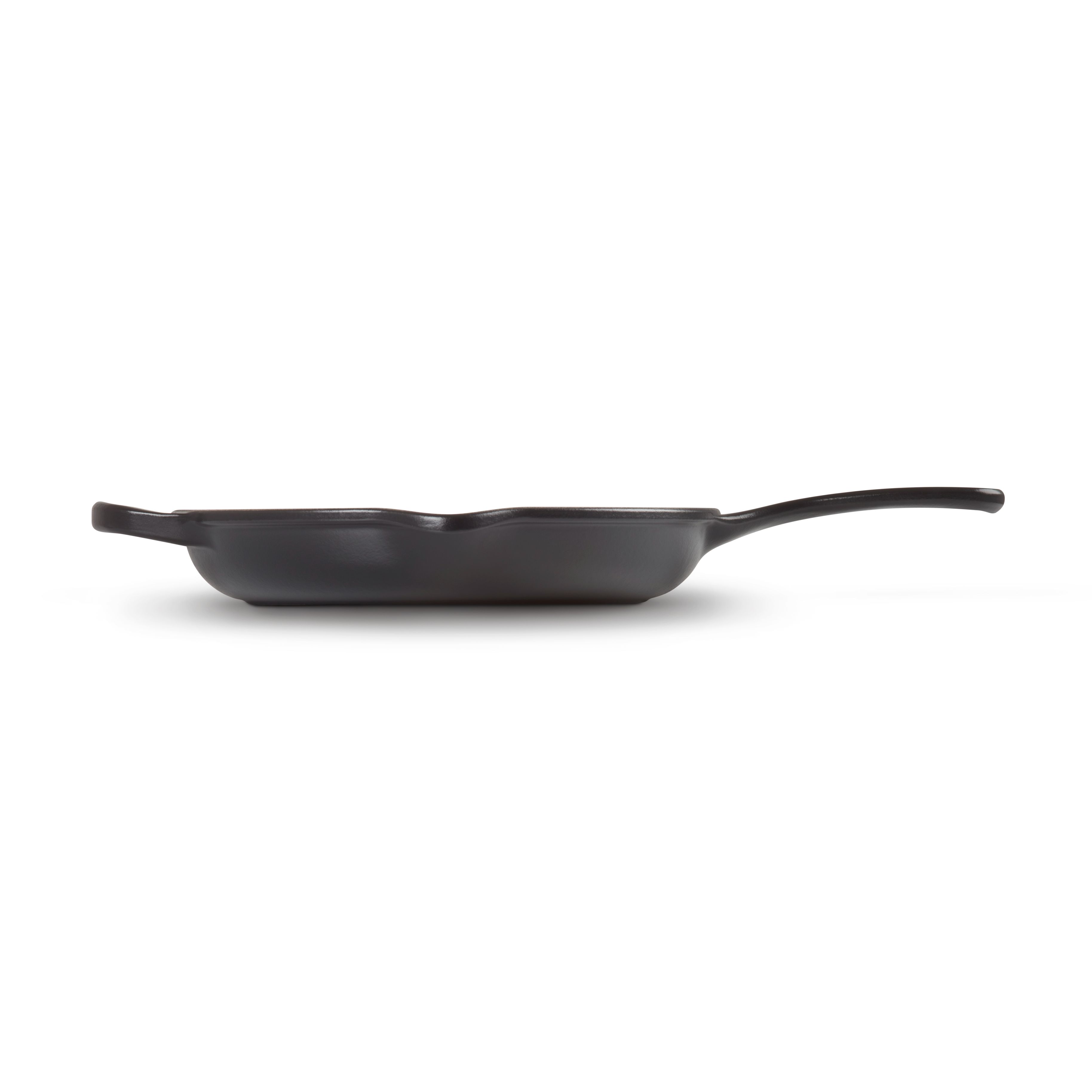 The Skillet is coated with Le Creuset’s specialist satin black enamel finish. Very durable and easy to clean, the satin black enamel interior has been especially designed to protect the pan (no seasoning is required) and for high surface heat use. Over time, it develops a natural patina that is ideal for searing, browning and frying.
