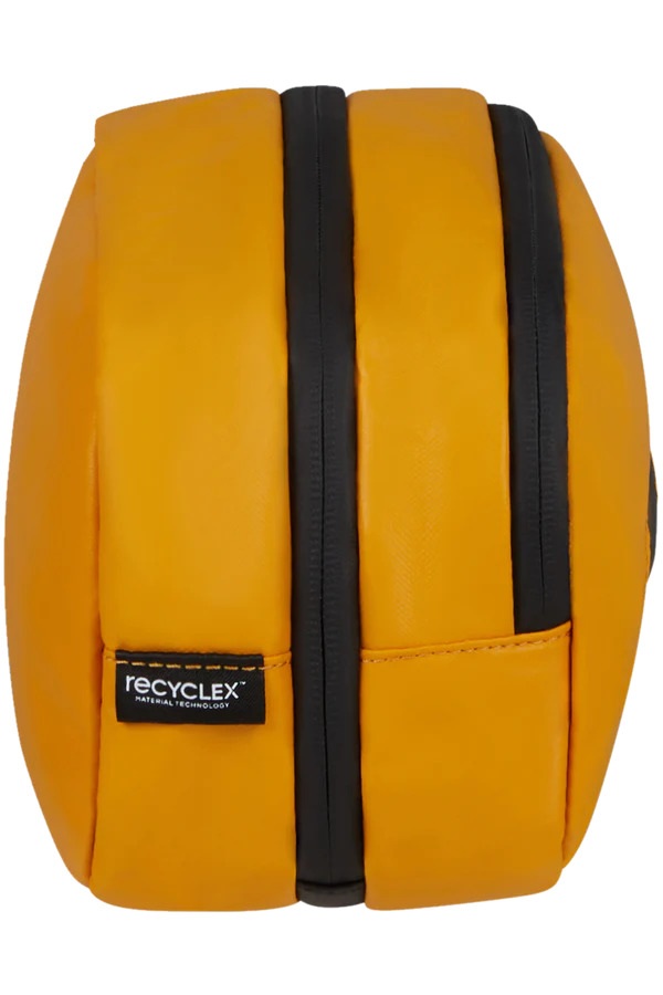 The main outer fabric, interior lining, exterior and interior zipper tape are made with the equivalent of 5 recycled PET bottles (0.5l - 20g).