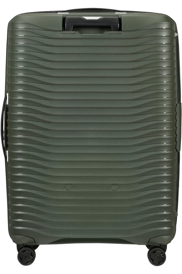 Samsonite's Sage Green UPSCAPE Spinner (4 wheels) in 75 cm is your travel essential. With expandable space and effortless 4-wheel mobility, it combines vibrant style and practicality for your journeys ahead. Enjoy carefree travelling thanks to its lightness, the shock-absorbing suspension wheels and its removable & washable interior lining. The handy expandability and eye-catching silver lining will only add to the travel fun!