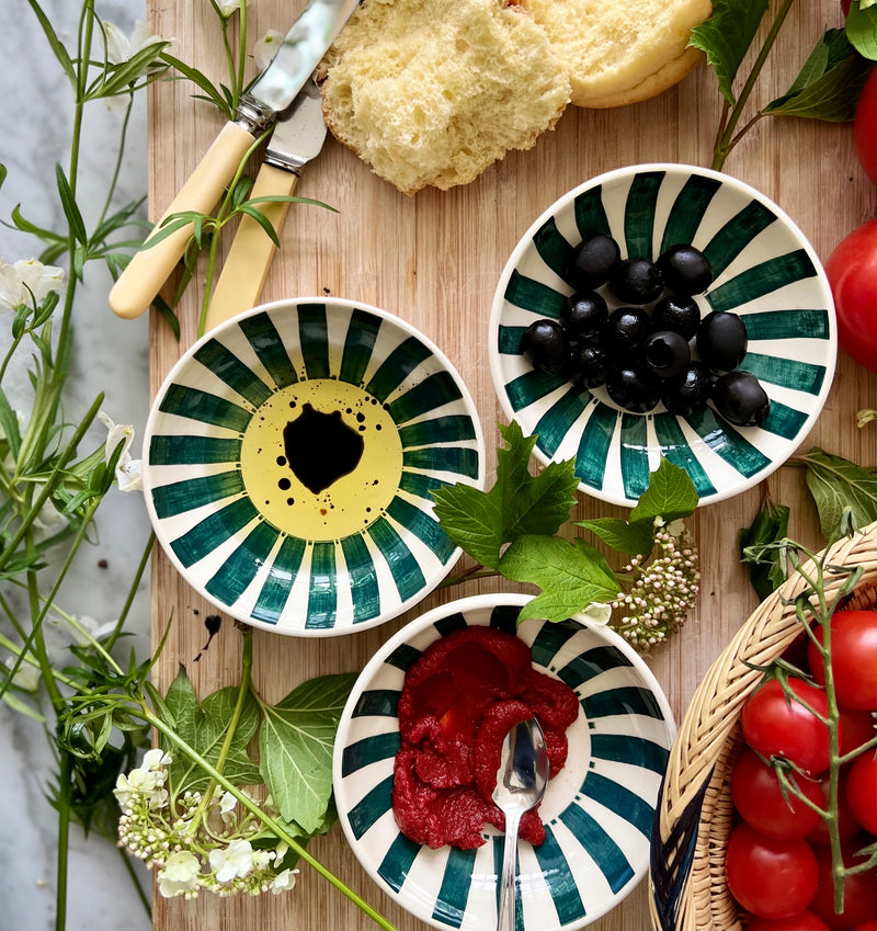 Medium Bowl in Green, Stripes, Set of Four