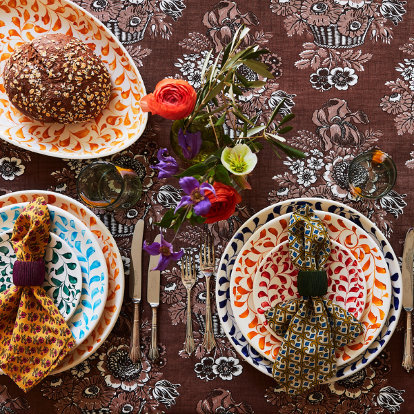 One of our heritage designs, the Scroll is instantly recognisable in Malta, having been in production since the 1950's. Conceived by Aldo Cremona and passed down over the years, it's a romantic pattern that's full of vibrancy too, thanks to the sunny colourways and busy rhythm. Pair with our Stripes for a laid-back mix-and-match look.