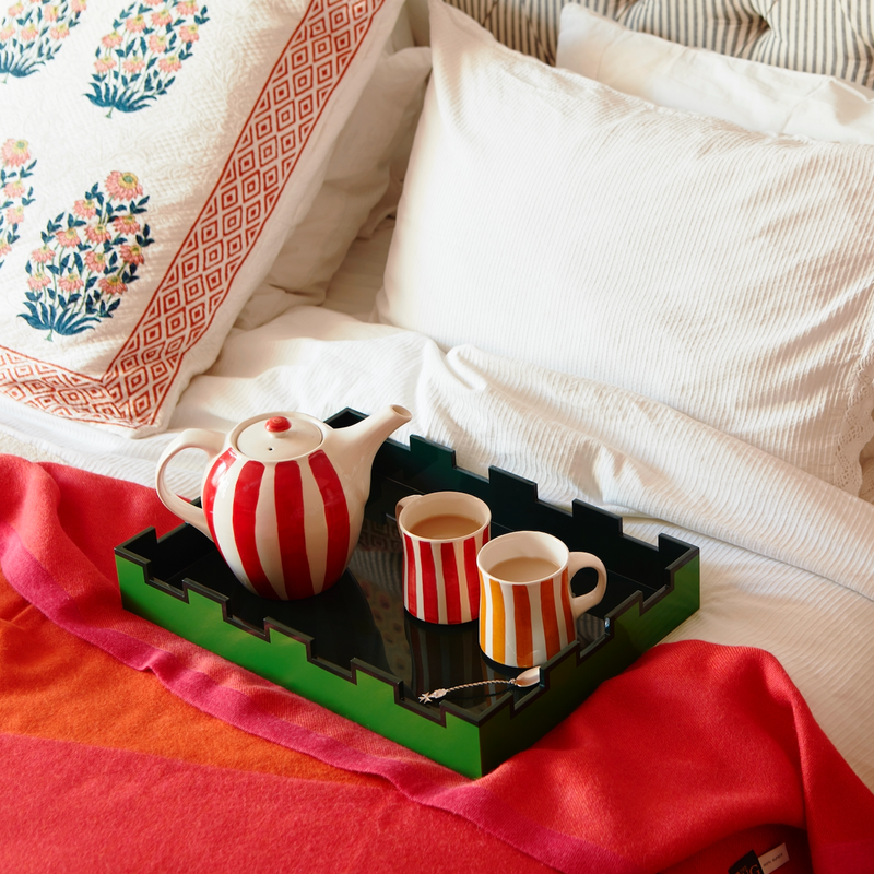 Tea Set in Red, Stripes, 6 Piece
