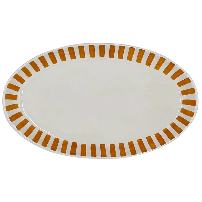 Large Oval Platter in Yellow, Stripes
