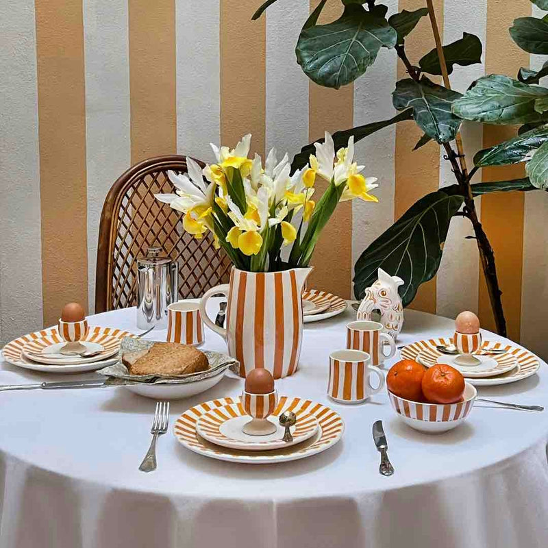 Searching for a contemporary complementary pattern to mix-and-match with our other designs, we came up with our Stripes. The chunky bands of colour are as brilliant on their own as they are when paired with our Palm pieces or the Scroll range. Use an informal mismatch of them all to serve up a summer lunch that?s pure perfection.