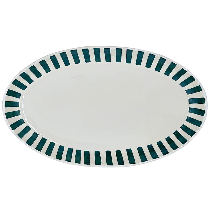 Large Oval Platter in Green, Stripes