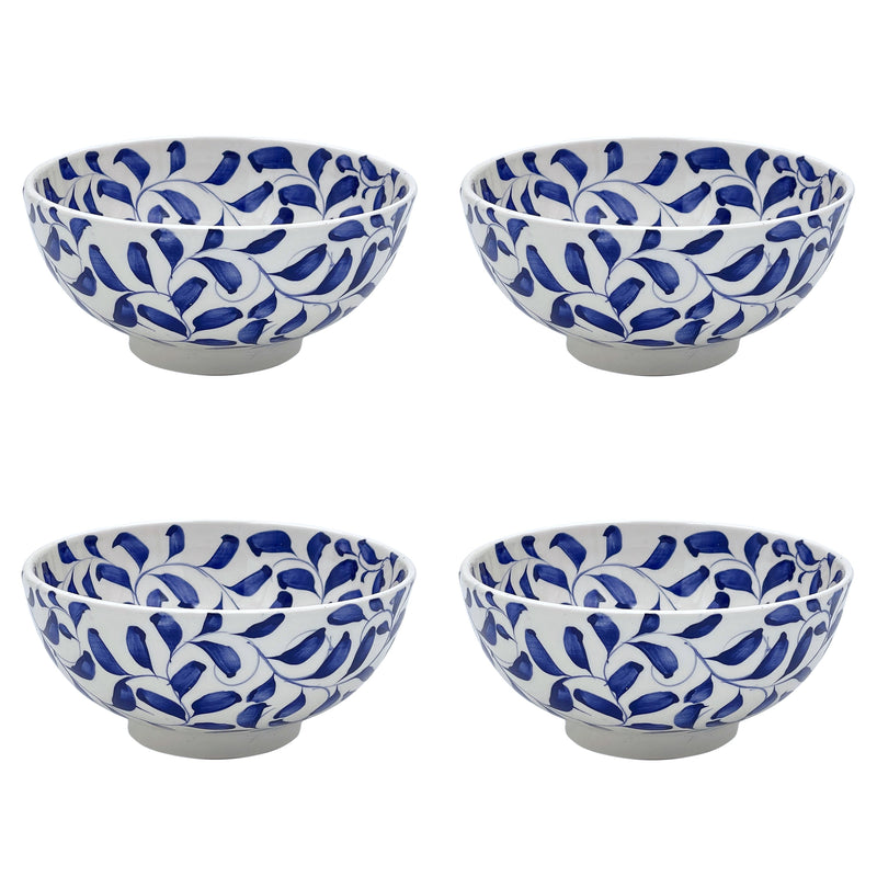 Medium Bowl in Navy Blue, Scroll, Set of Four