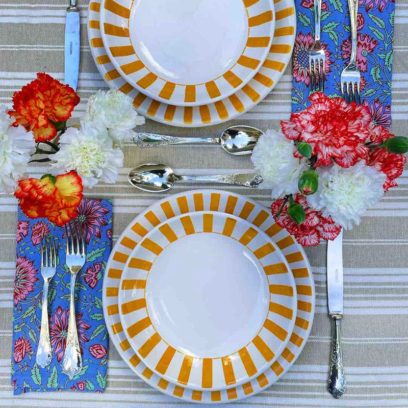 Dinner Plate in Yellow, Stripes, Set of Four