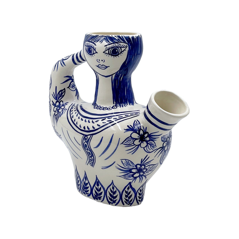 Many decades ago, the late Aldo Cremona, a master painter who worked at Villa Bologna Pottery for 65 years, decided that he'd had enough of painting only men and decided to turn some of our Admiral vases, a nod to Malta's seafaring military history, into women. Everyone liked them so much, we kept them. Now you can choose between handsome sailors in striped tops, or winsome women bedecked in jewellery. Both look beautiful with a bunch of fresh flowers.