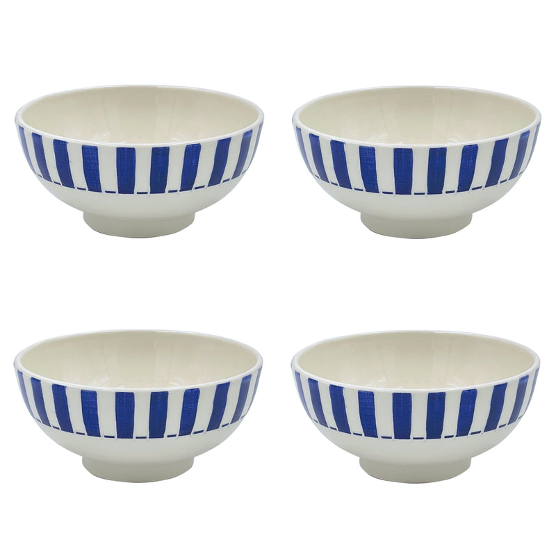 Medium Bowl in Navy Blue, Stripes, Set of Four
