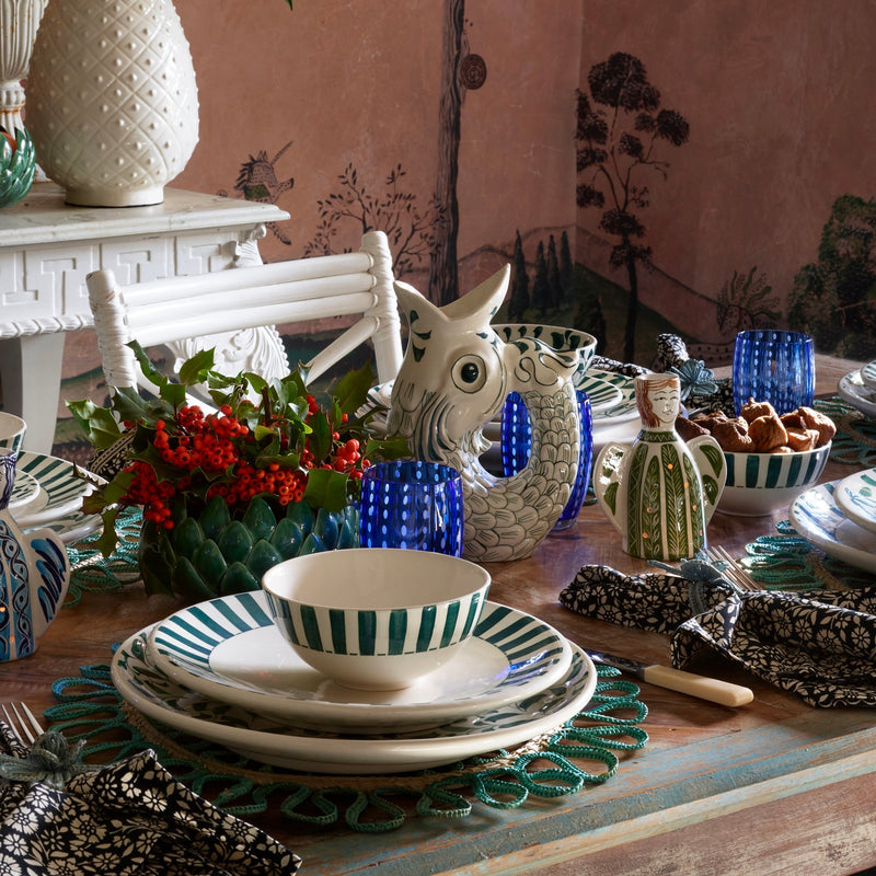 Searching for a contemporary complementary pattern to mix-and-match with our other designs, we came up with our Stripes. The chunky bands of colour are as brilliant on their own as they are when paired with our Palm pieces or the Scroll range. Use an informal mismatch of them all to serve up a summer lunch that?s pure perfection.