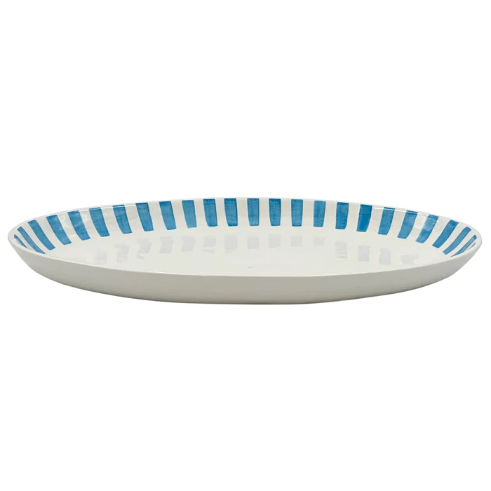 Large Oval Platter in Light Blue, Stripes
