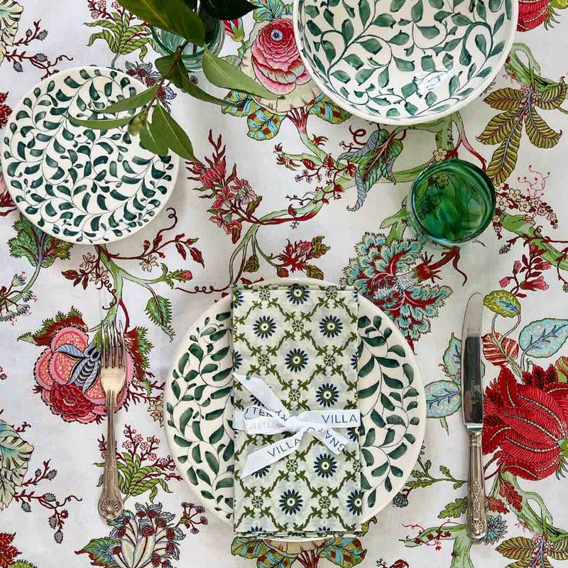 One of our heritage designs, the Scroll is instantly recognisable in Malta, having been in production since the 1950's. Conceived by Aldo Cremona and passed down over the years, it's a romantic pattern that's full of vibrancy too, thanks to the sunny colourways and busy rhythm. Pair with our Stripes for a laid-back mix-and-match look.