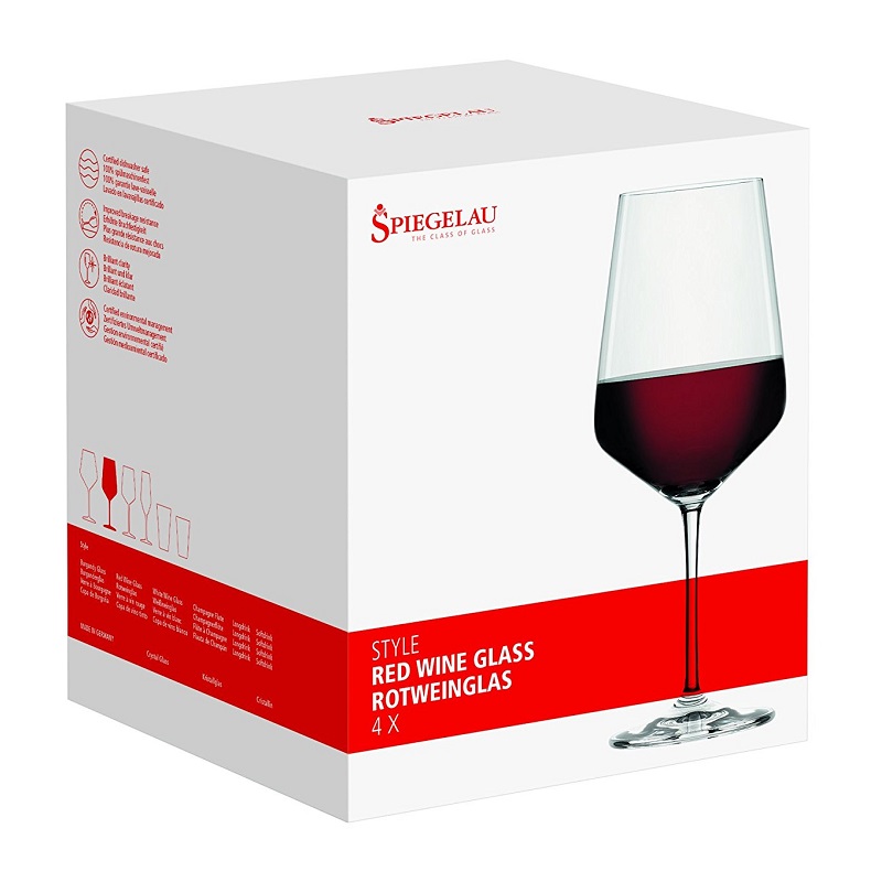 Style red wine glasses measuring 230mm tall is available as a set of 4 glasses in a Spiegelau Gift box.