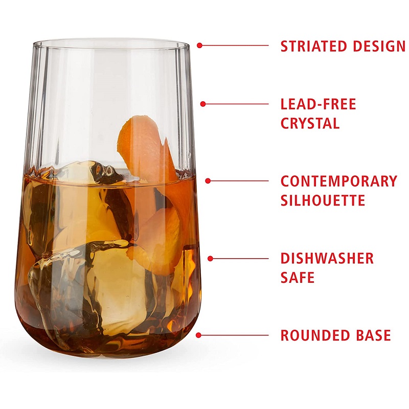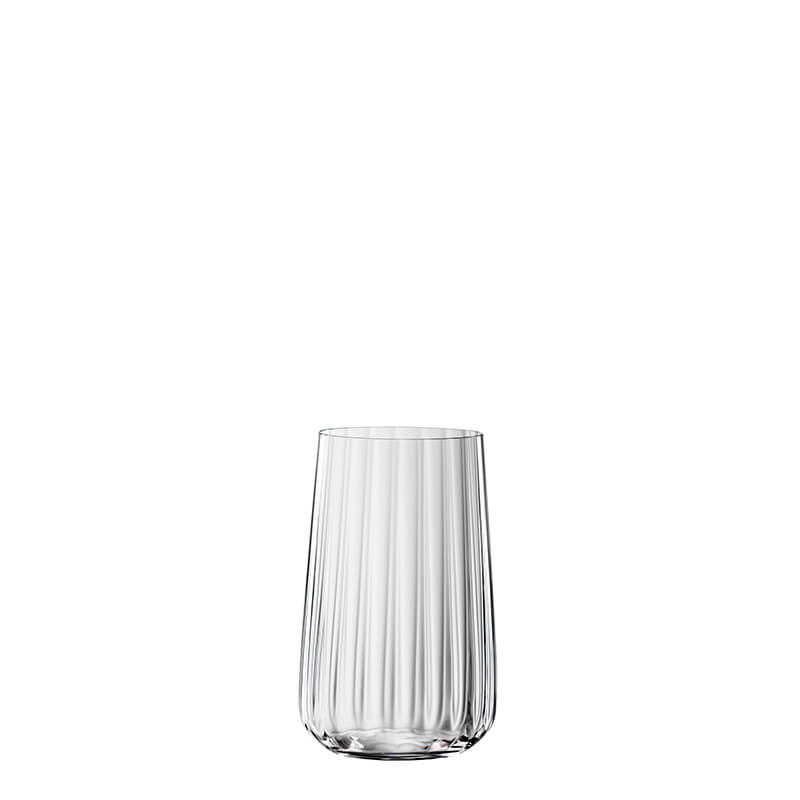 Spiegelau Lifestyle Longdrink glass, Set of 4 Size: 130 mm Capacity: 510 ml Diameter: 83 mm 1 set contains 4 itemsThe glasses SPIEGELAU LIFESTYLE are at home wherever lifestyle and fashion meet. Their modern diamond shape is emphasized once again by the linear decoration. With brilliance and exciting optical effects, the crystal glasses contribute to a high-quality ambience on the laid table.