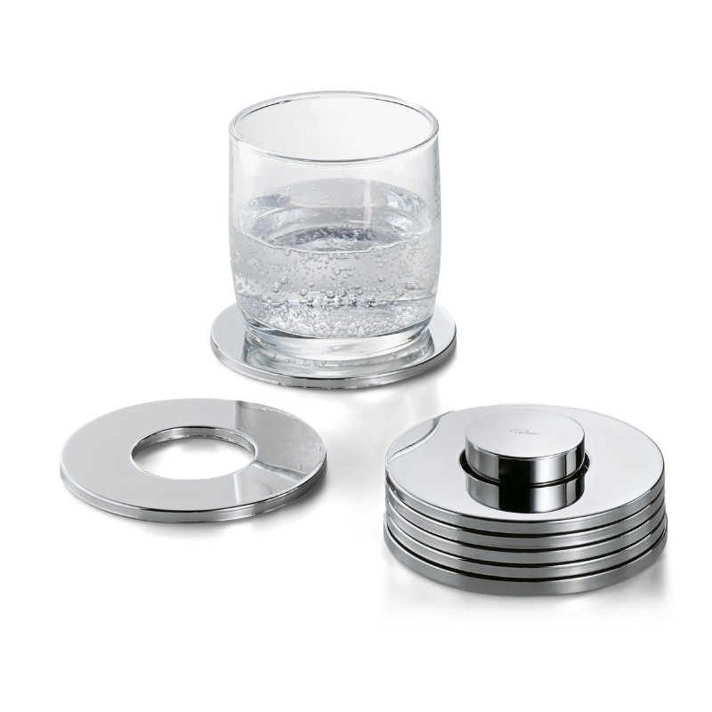 Coated with nickel, these coasters shine underneath any cocktail glass. With their soft undersides, they can be placed almost anywhere. Unostentatious, simple and sophisticated; these coasters leave wonderful memories behind; in your thoughts and never as marks on your tables.