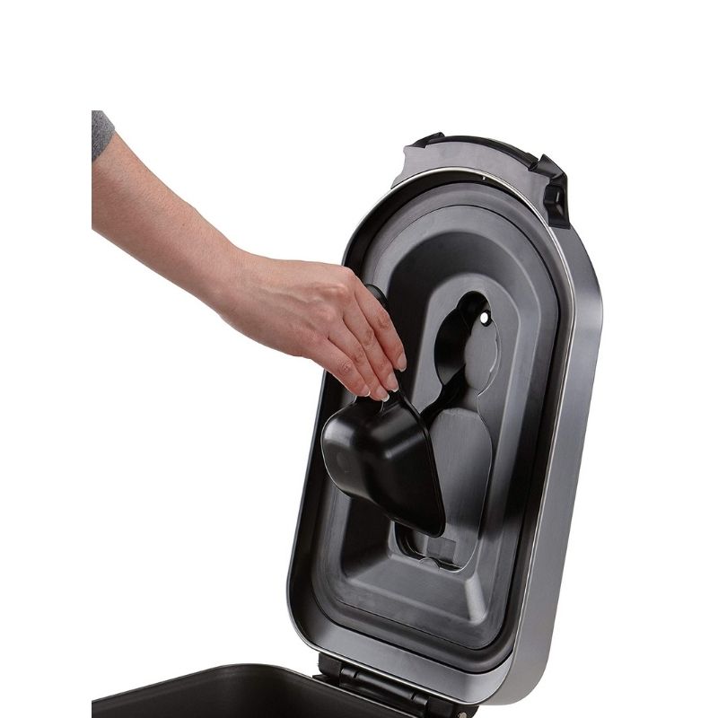 MAGNETIC LID-MOUNTED SCOOP - The lid-mounted measuring scoop magnetically attaches under the lid, so there's no fumbling around at feeding time.