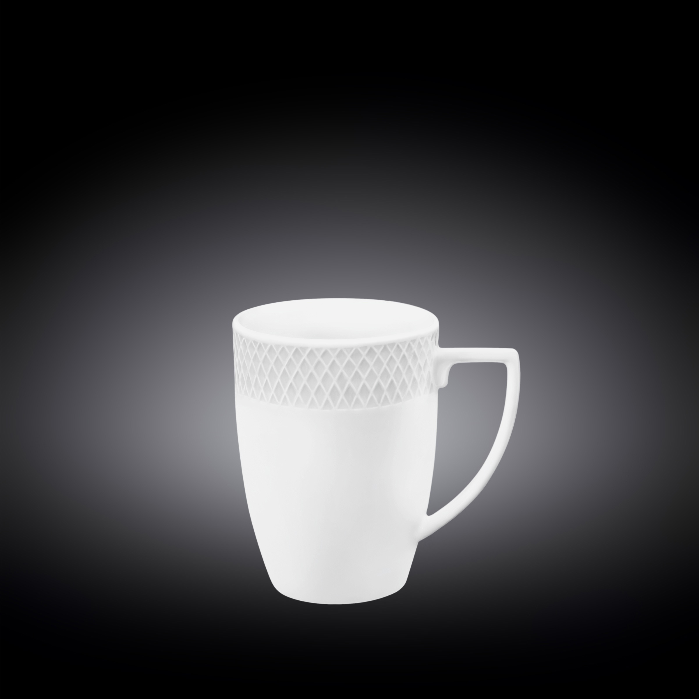 JMug. 35cl. Comes in a pack of 2. Flat white porcelain plate made of high-quality fine porcelain. The Julia collection by Wilmax includes a variety of plates: dessert, dinner, deep, oval and round platters, as well salad bowls of various sizes. The embossed edge of the products with the characteristic diamond pattern makes the tableware elegant and attractive. And the protective glaze provides snow-white products with smoothness and mirror shine.
