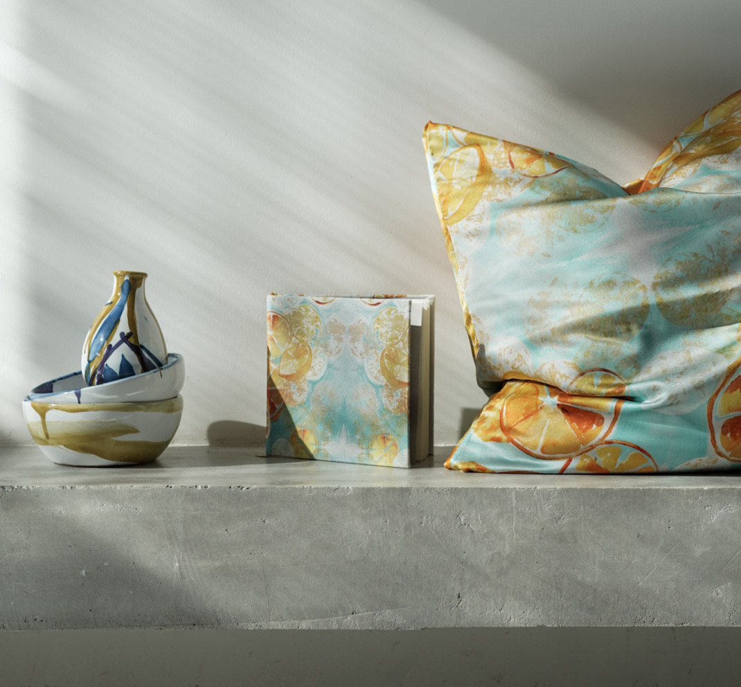 An envelope cut cushion cover without zips. All of our cushion fabrics are selected from our print archive which have inspired our mediterranean collections over the years. Price includes filler.