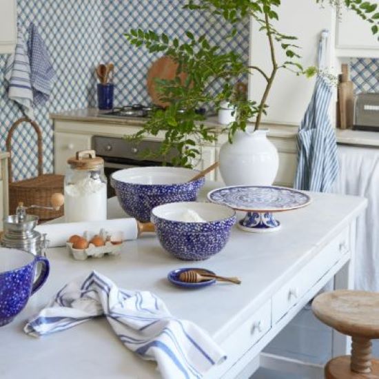 Meet the Abbey collection, a beautiful narrative of countryside living. Displaying a vibrant blue glaze, this collection has a contemporary farmhouse look with a hint of nostalgia. The collection includes a five-piece dinner set, a generous jug that is ideal for refreshing drinks on the table or freshly cut flowers, three serving pieces, and three sizes of bakers. Alongside, charming kitchen accessories and bowls with a unique splatter finish applied randomly by hand; perfect for cooking or just displaying in the kitchen.
